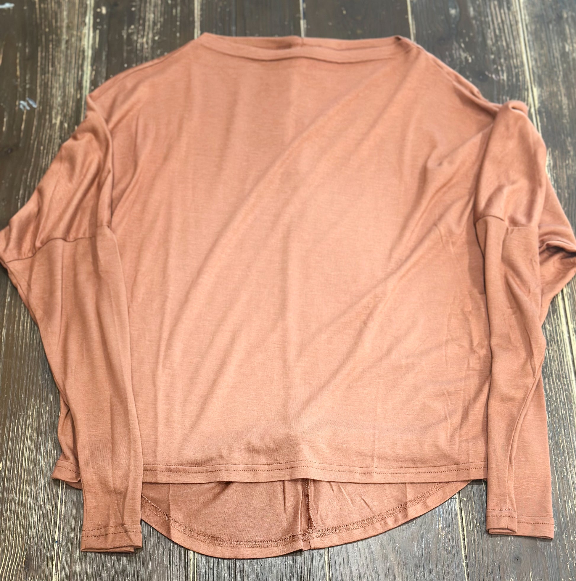 Stretchy, loose, and flattering. This top can be layered and paired with a cute pair of jeans and booties.
