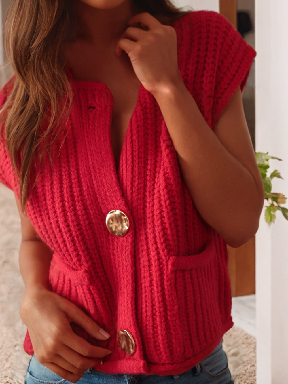LDC Solid Textured Knit Side Pockets Buttoned Sweater Vest